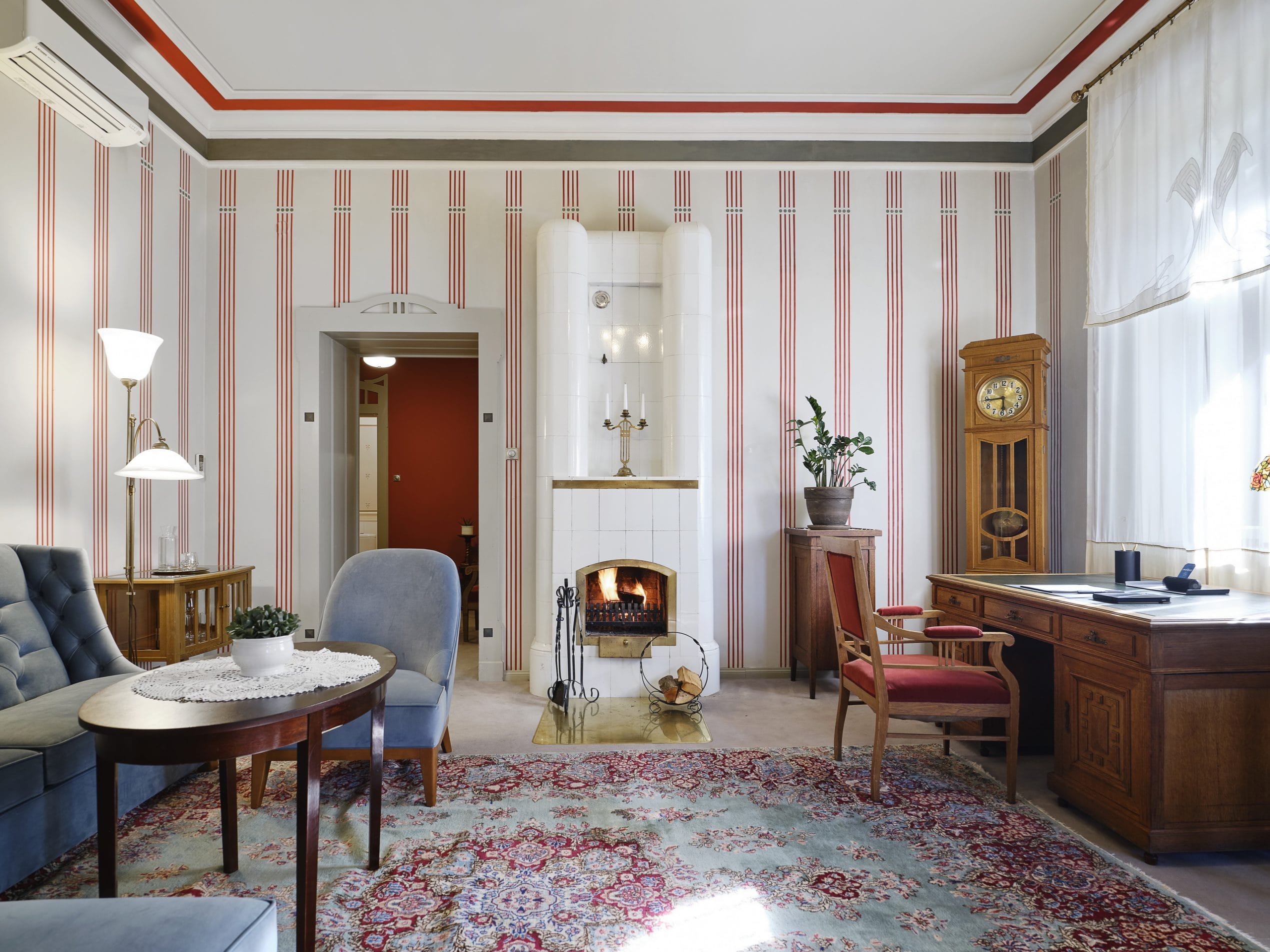 Feeling more like a homely apartment than a hotel room, the Hermann room stands second in line when it comes to size. This room used to be Mr. Ammende’s study and it is still perfectly fit for focusing on work.